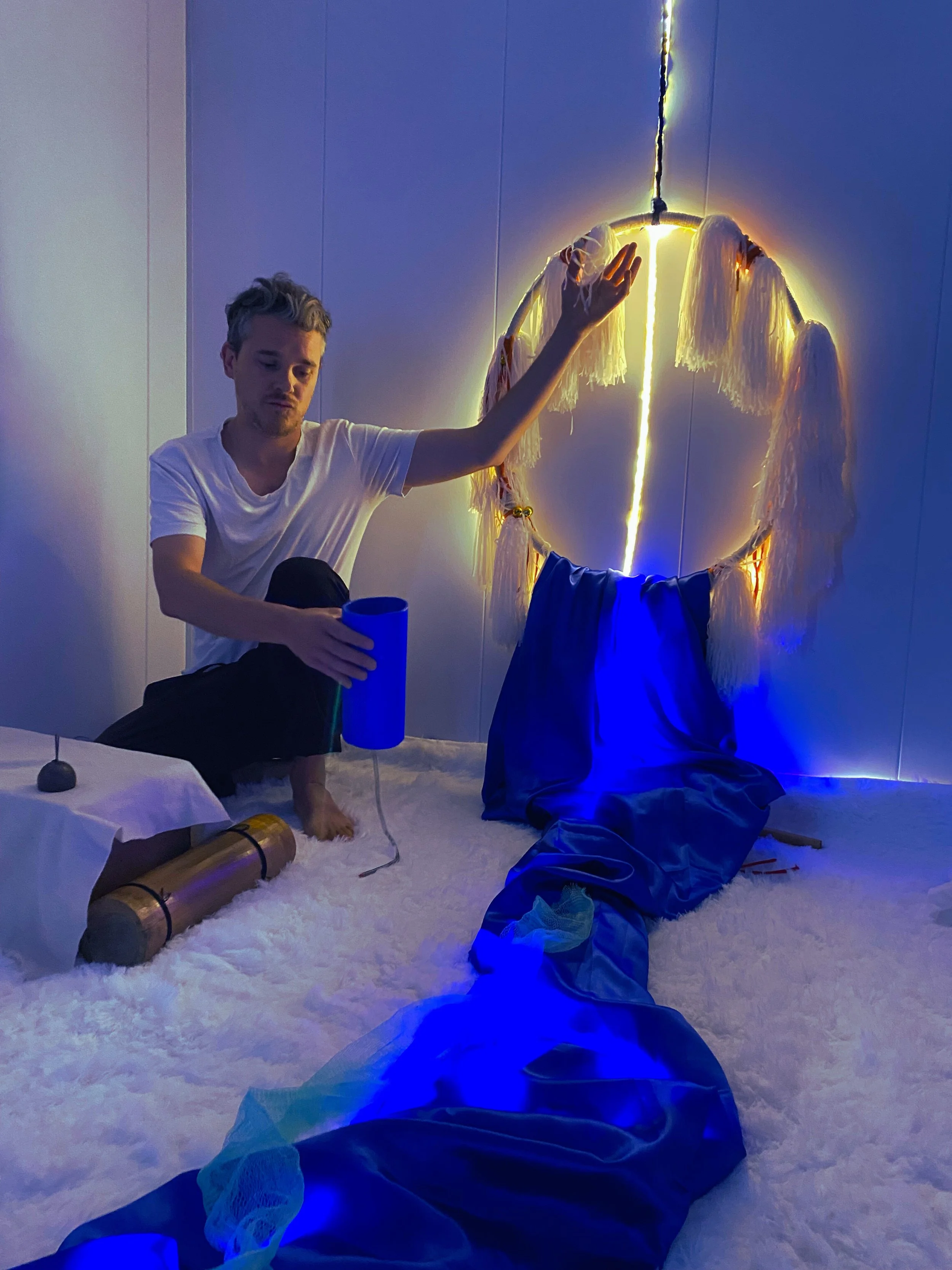 Experiencia pensada especialmente para primeras infancias ( 6 a 18 meses) Una instalación sensorial en donde guaguas y acompañantes podrán presenciar un pequeño concierto y luego explorar libremente el espacio.